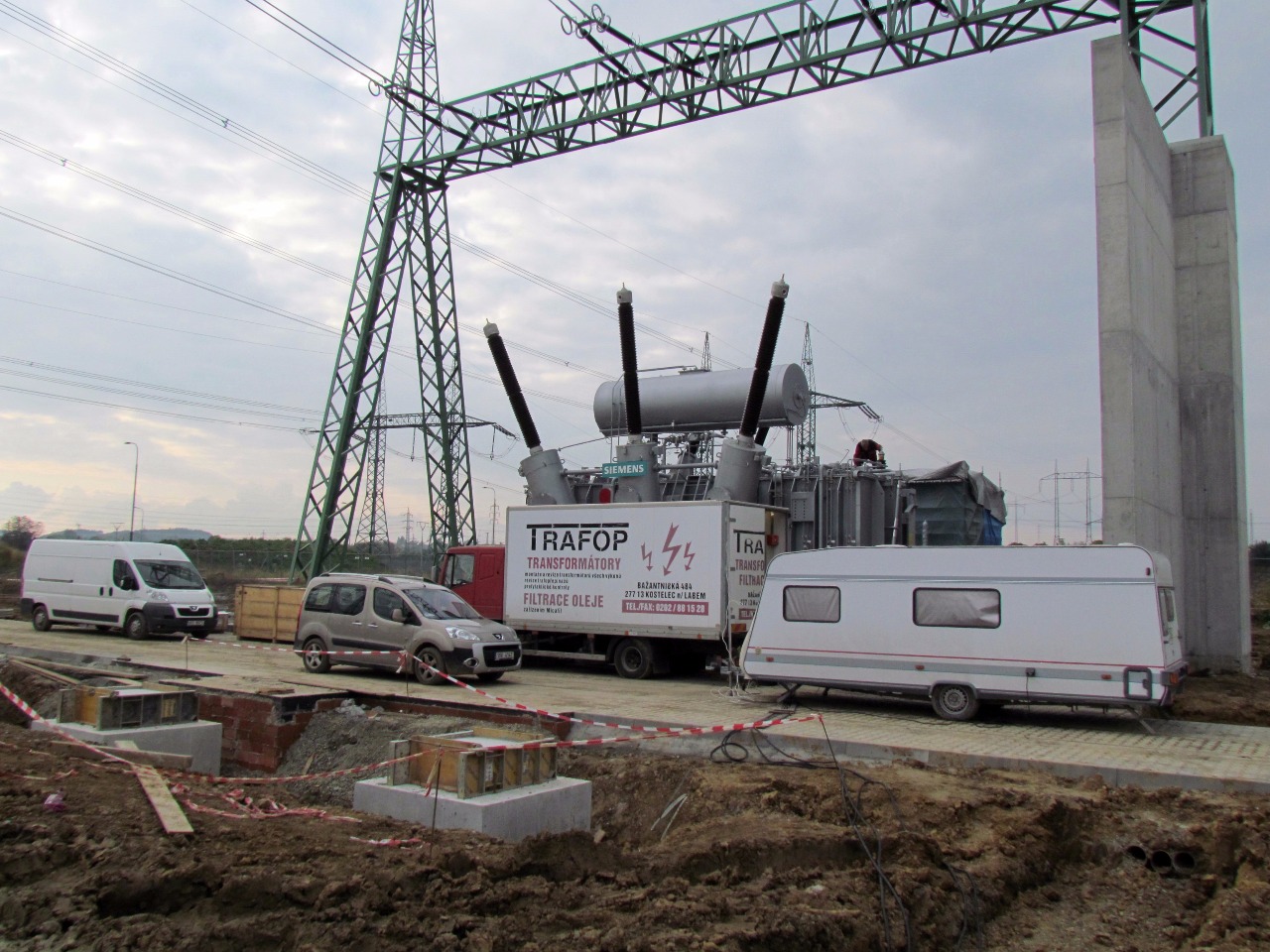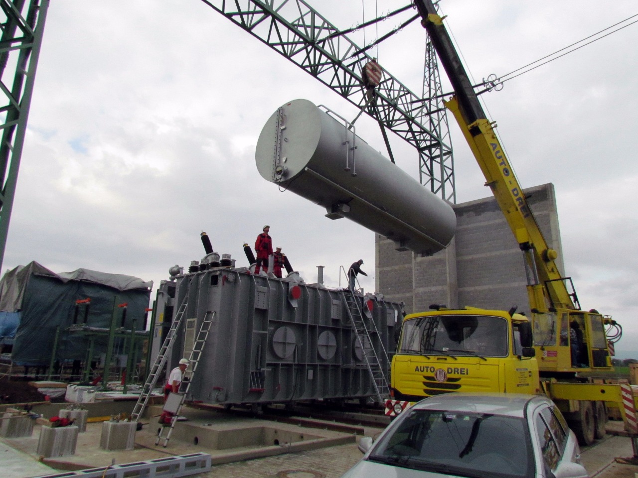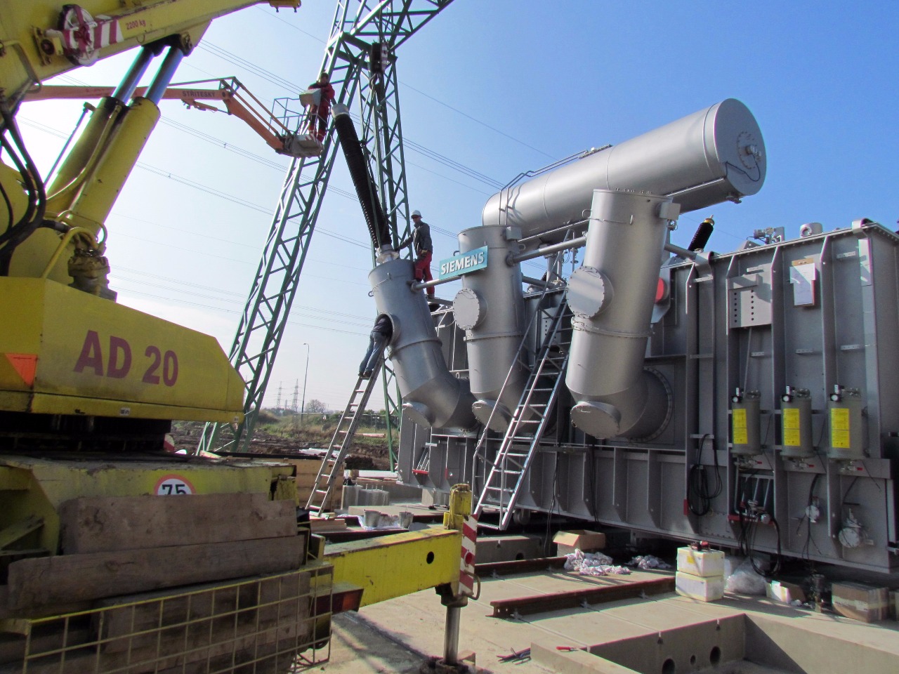 Nahlédněte s námi do montáže nového tří fázového transformátoru Siemens T402 420/121/10,5 kV, 350 MVA v RS Prosenice, která proběhla v roce 2014. Jedná se o první instalaci v nové rekonstruované části rozvodny. Naše práce pokrývaly vše od chvíle, kdy byl transforátor usazen na pozici až do jeho připojení do sítě a zahrnovaly i úpravu oleje a zaplavení transformátoru.